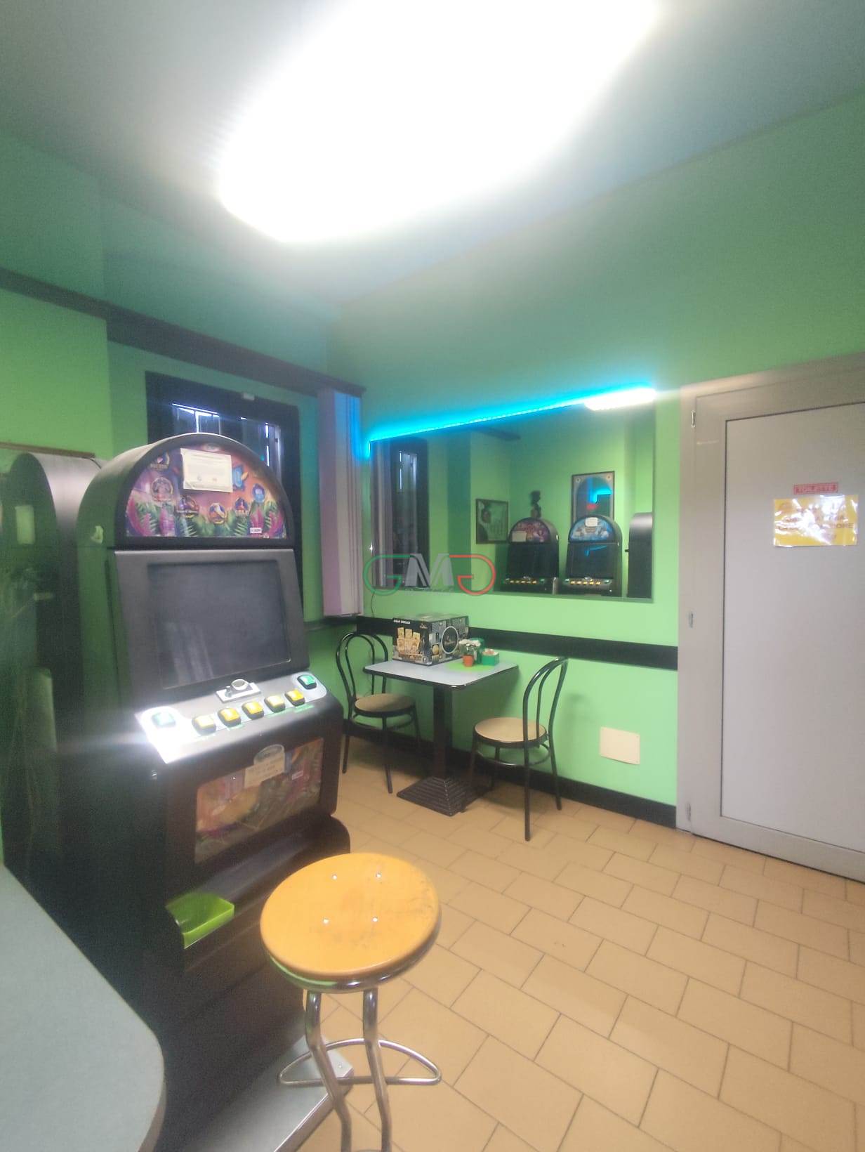 sala retro con slot machine