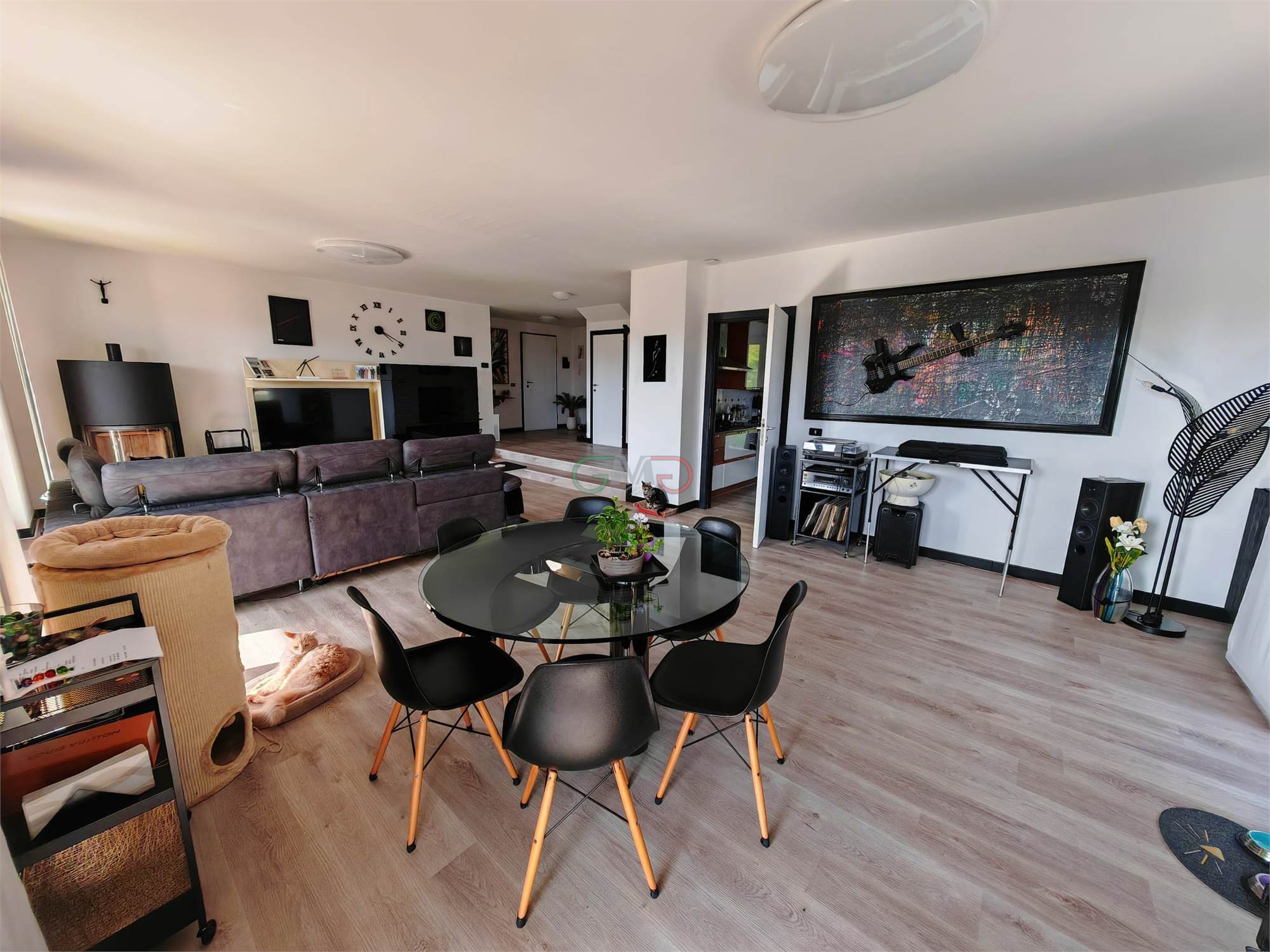 Ben 5 porte-finestre collegano direttamente al giardino, regalando luce naturale e una splendida continuità tra interno ed esterno.