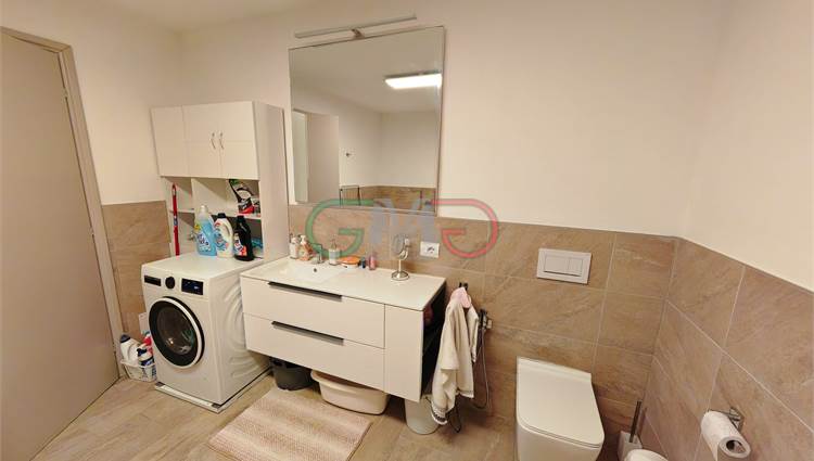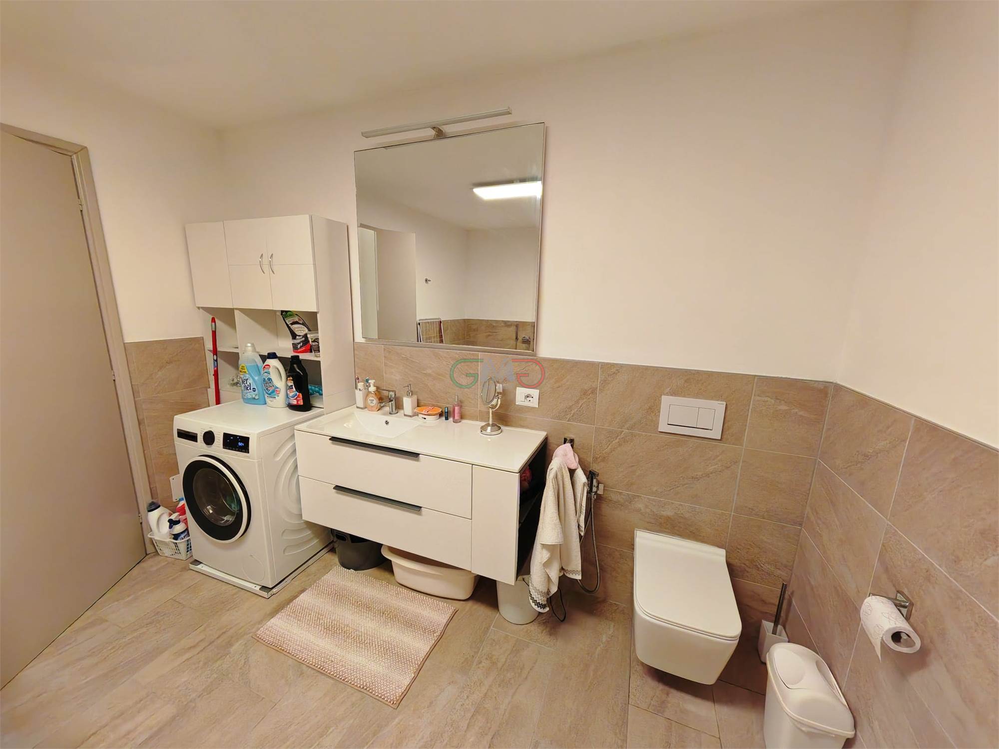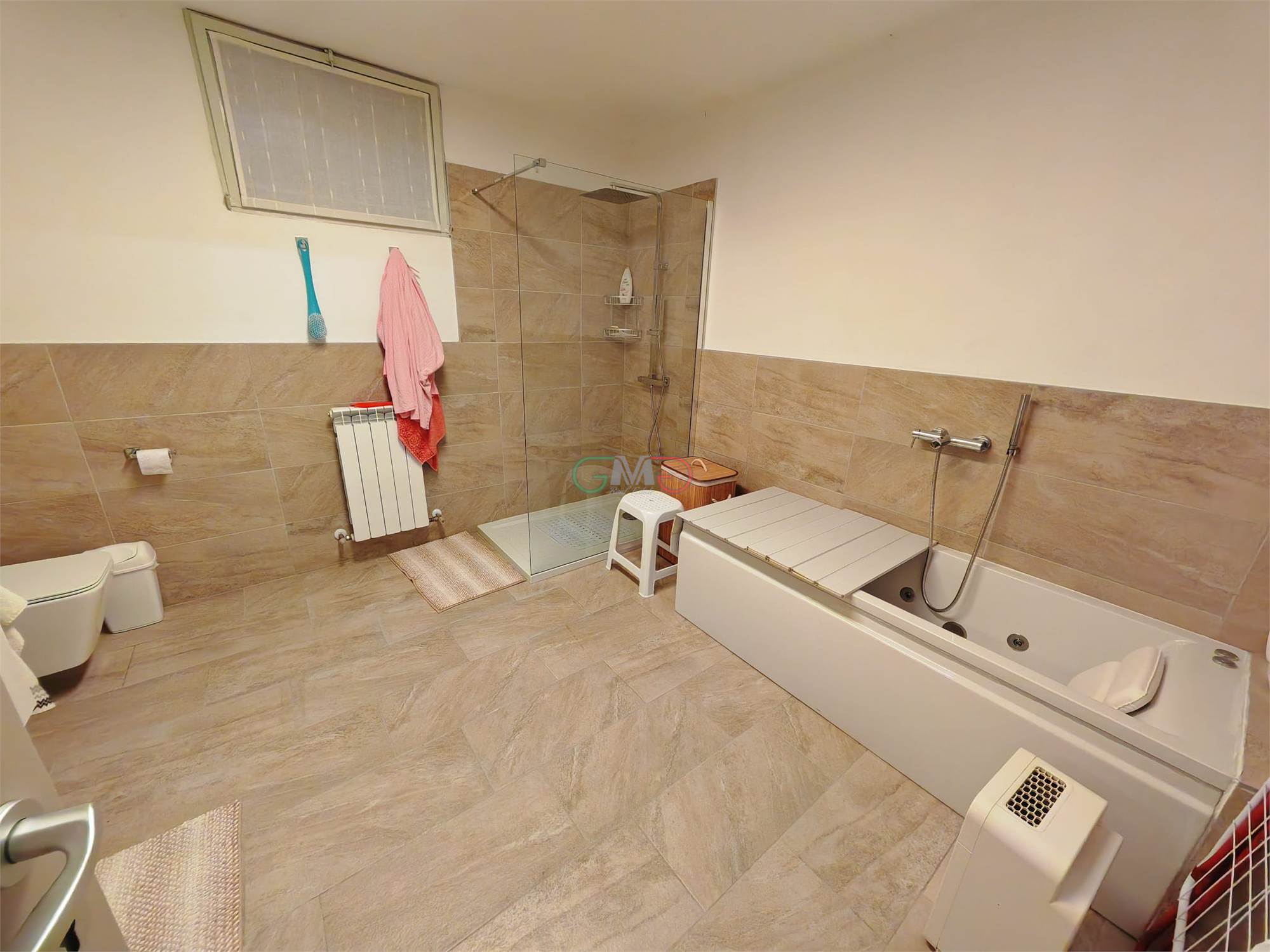 Ampio bagno/lavanderia con vasca e doccia