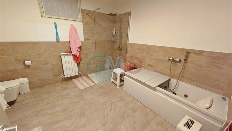 Il piano dispone di un bagno padronale spazioso e di un secondo bagno con doccia a servizio della camera matrimoniale, anch’essa climatizzata.